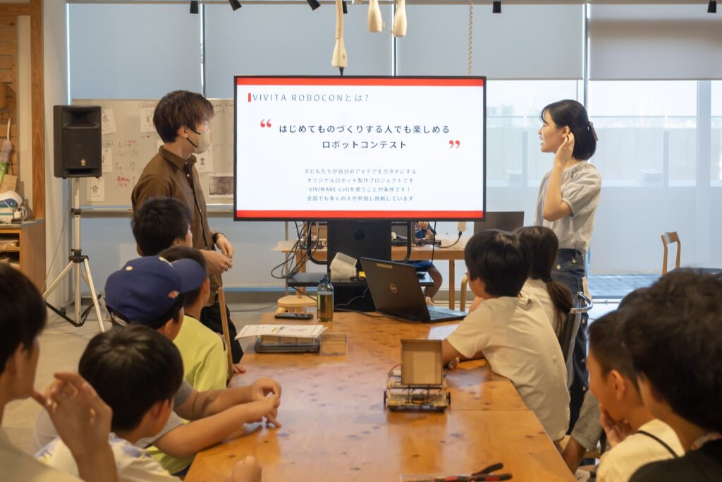 VIVITA ROBOCONは、子どもたちが自分のアイデアを具現化するオリジナルロボット製作プロジェクトです。課題解決に向けてロボットの仕組みや構造を考えて製作し、プロジェクトを自分の力で推進します。公式サイトはこちら